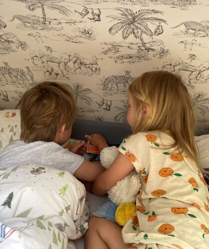 💤 Een valnet in het geval van een hoogslaper of alkoofbed. Dit zorgt dat je kind veilig in z’n bed blijft liggen en… niet naar beneden valt. Ik (Aimée) ben als kind eens naar beneden gedonderd in onze oude Mercedesbus. Dat liep goed af, maar was voor niemand leuk. En rollen de kinderen niet meer zomaar uit bed, dan houdt het valnet de dekens tegen en hoef je er niet uit om ze weer over je kind te draperen.